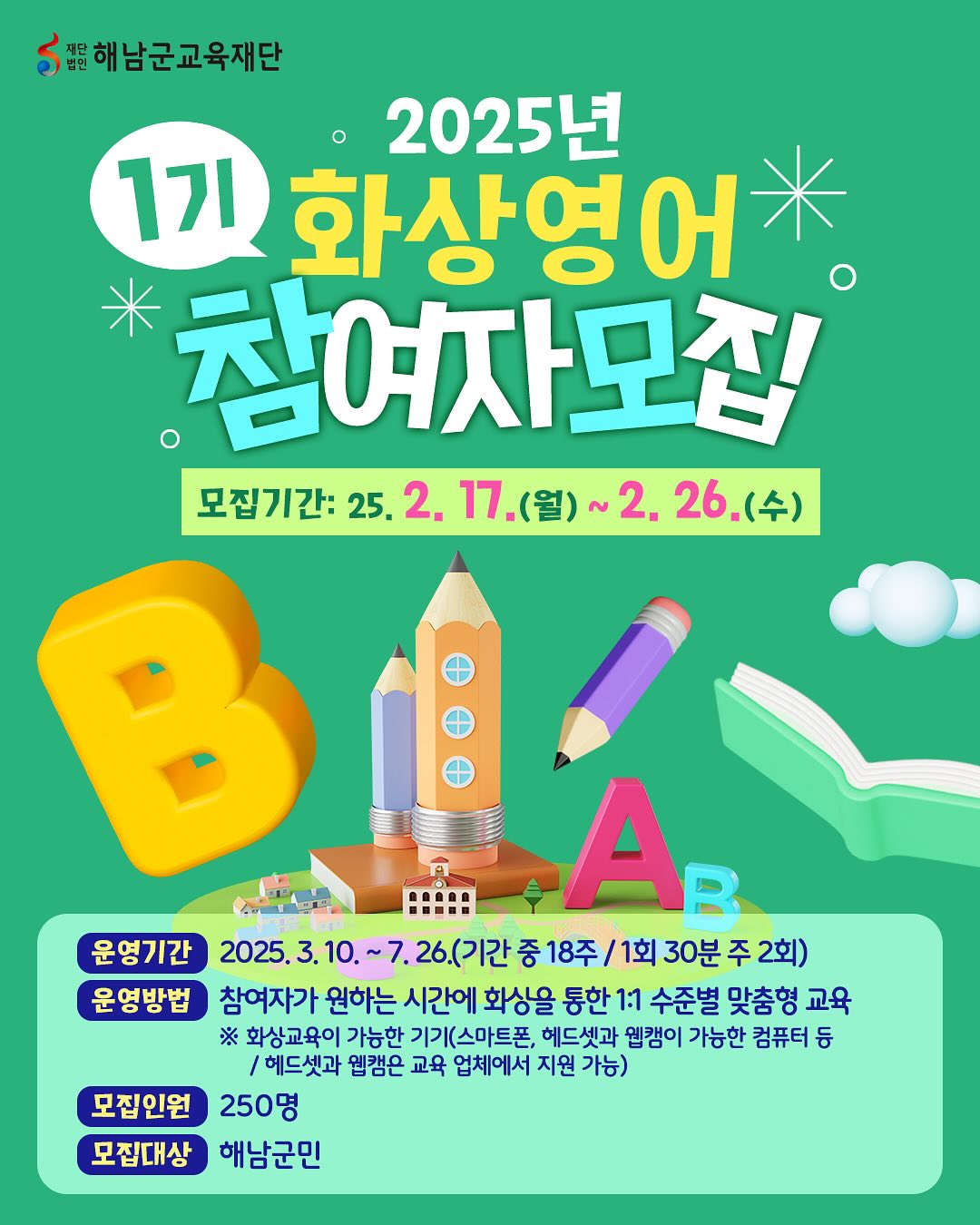 2025 해남군교육재단 카드뉴스 및 블로그 커버 디자인