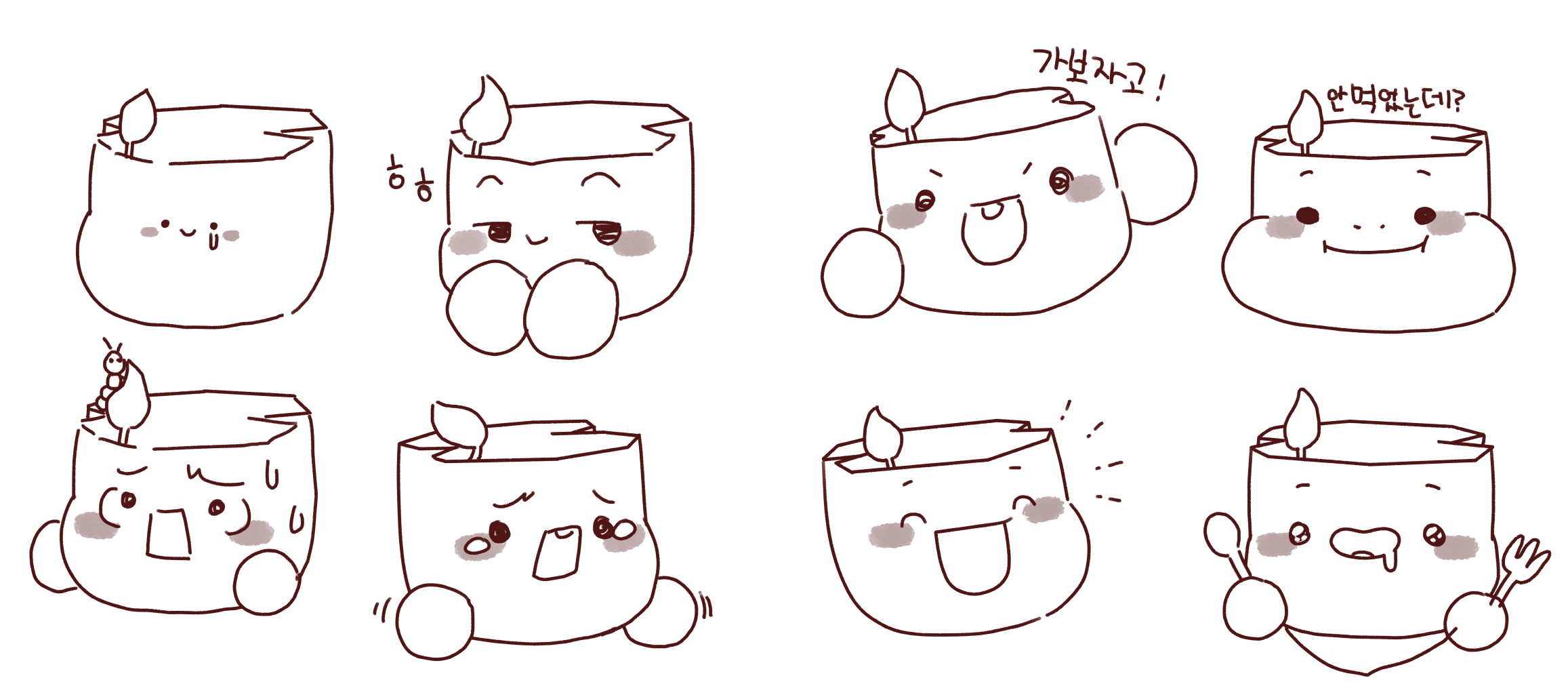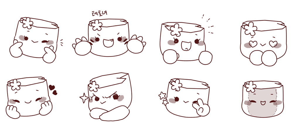 키링을 위한 캐릭터 응용 스케치안 16종을 보내드렸으며