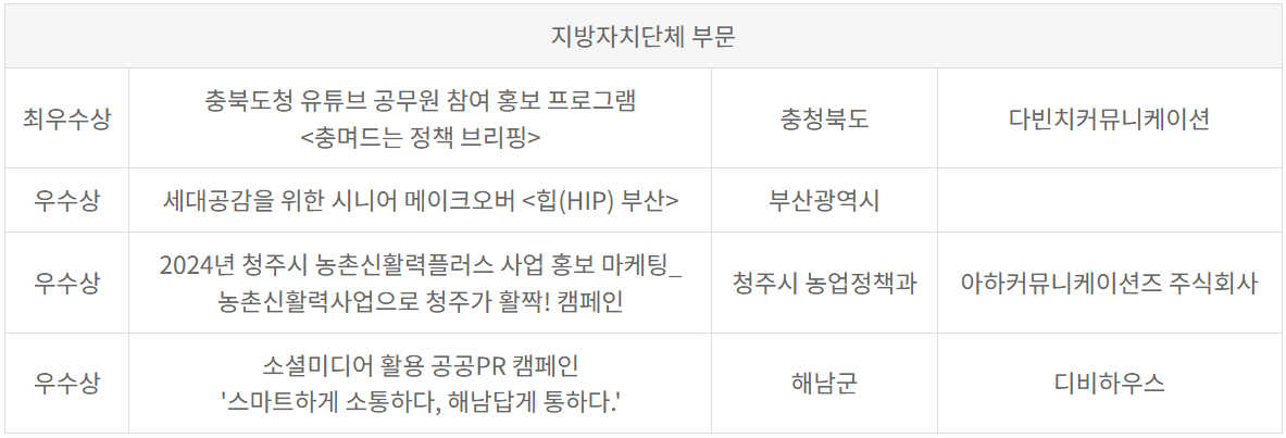 해남군은 이번 공공 브랜드 대상에서 지방자치단체 부문 우수상을 수상하였습니다.